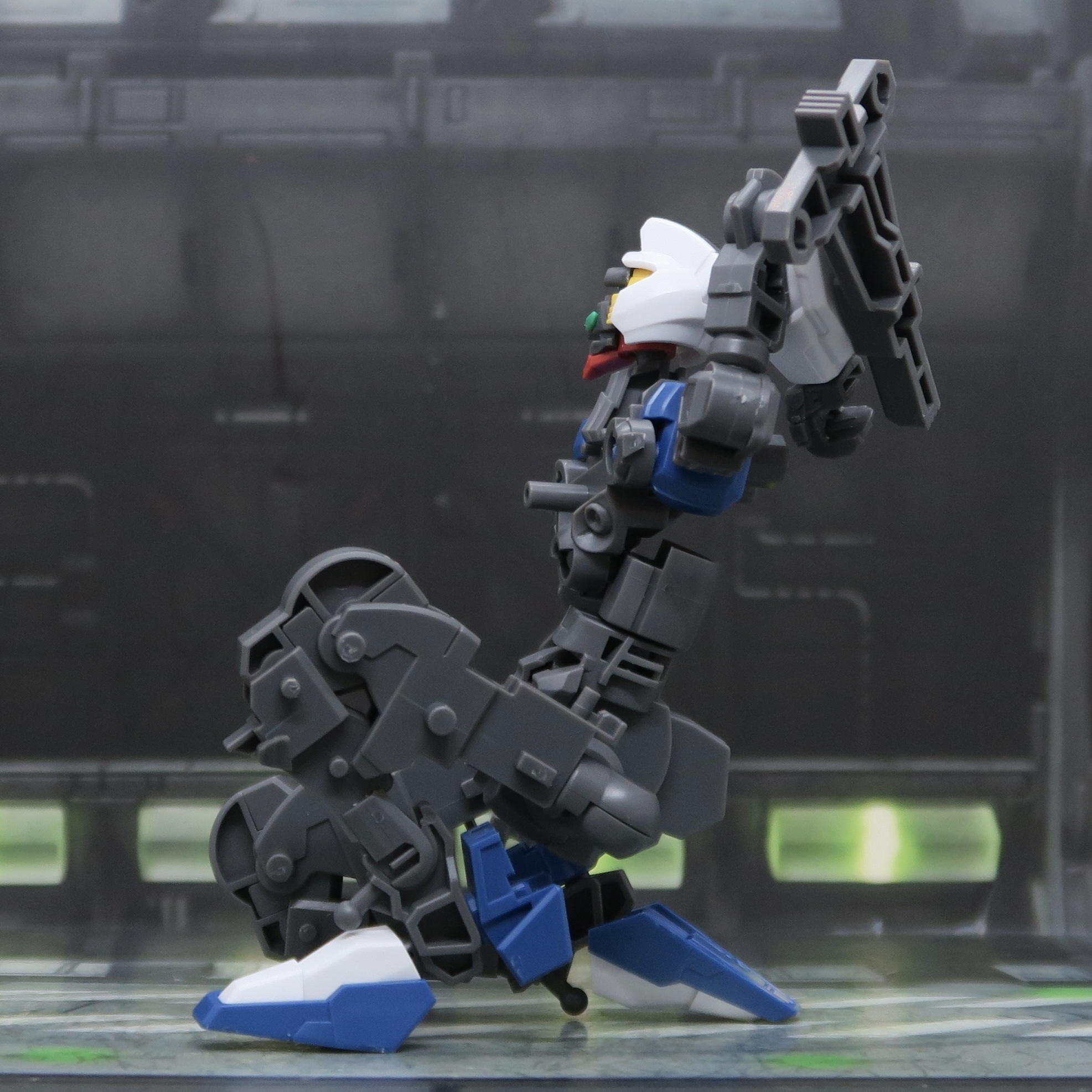 講真,真係需要用支架,唔係嘅話,點睇對腳嘅比例都出事,好似整體都短咗又肥咗,而且哩種「宇宙型」嘅機體,都入用支架再擺浮空架式會更有發揮。Gund-bit 係可以分體展示,但連官方展示圖都係用MG Size 支架再用一堆細支架「堆砌」,欠缺一種完整性,幸好某國有推出「寂靜零號」為藍本嘅支架,亦可以將Gund-Bit 還原動畫中圍住自身嘅場景。更可以轉90度,轉向前衝嘅擺放,明向Bandai 宣戰。Gundam Age FX 果款支架樣式唔可以附上嗎?