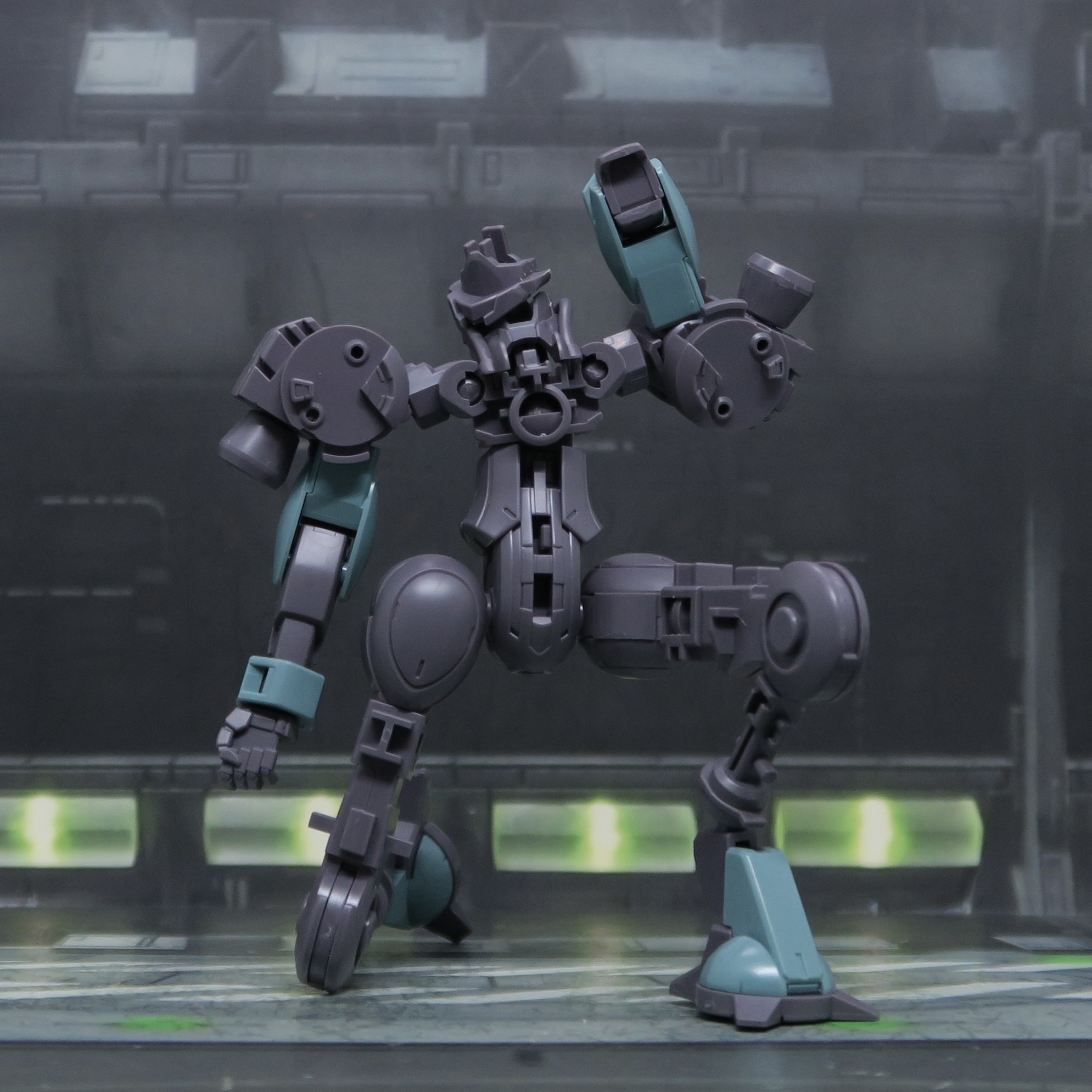 由亦本作HG 已完全棄用PC軟膠作為關節,所以結構又開始簡陋起上嚟,對合,90-100度屈曲,無二段關節…亦因為咁,只有主角機才有正常價錢嘅待遇,其它都需要特價才能賣清…