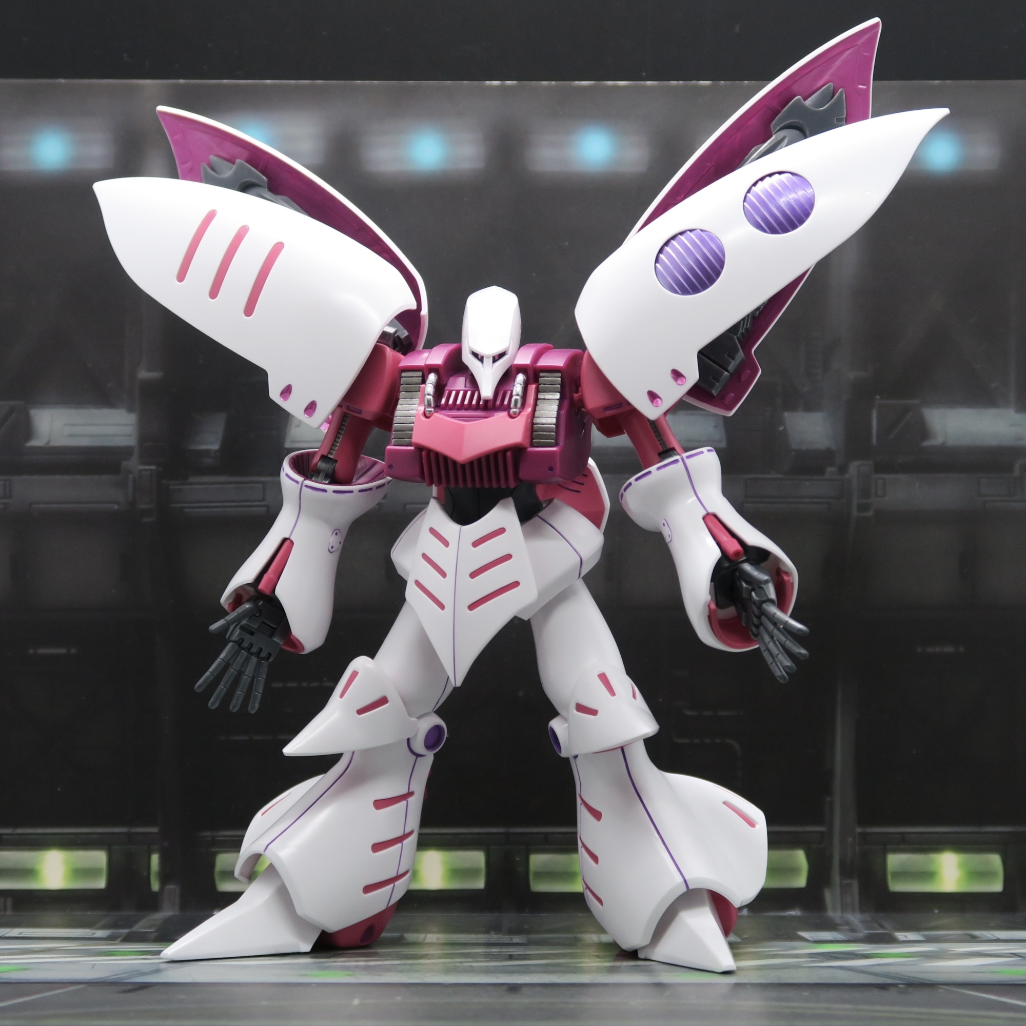In UC century, the most distinctive is Gundam Z. Strange but not deviant,Crazy but not over Gundam MS, create a new world of Gunpla. You can see it is a beautiful lady color, lady curve, totally telling you i am a lady MS. For me, Purple better than blue in Qubeley, so White, Pink and Purple made me comfort.