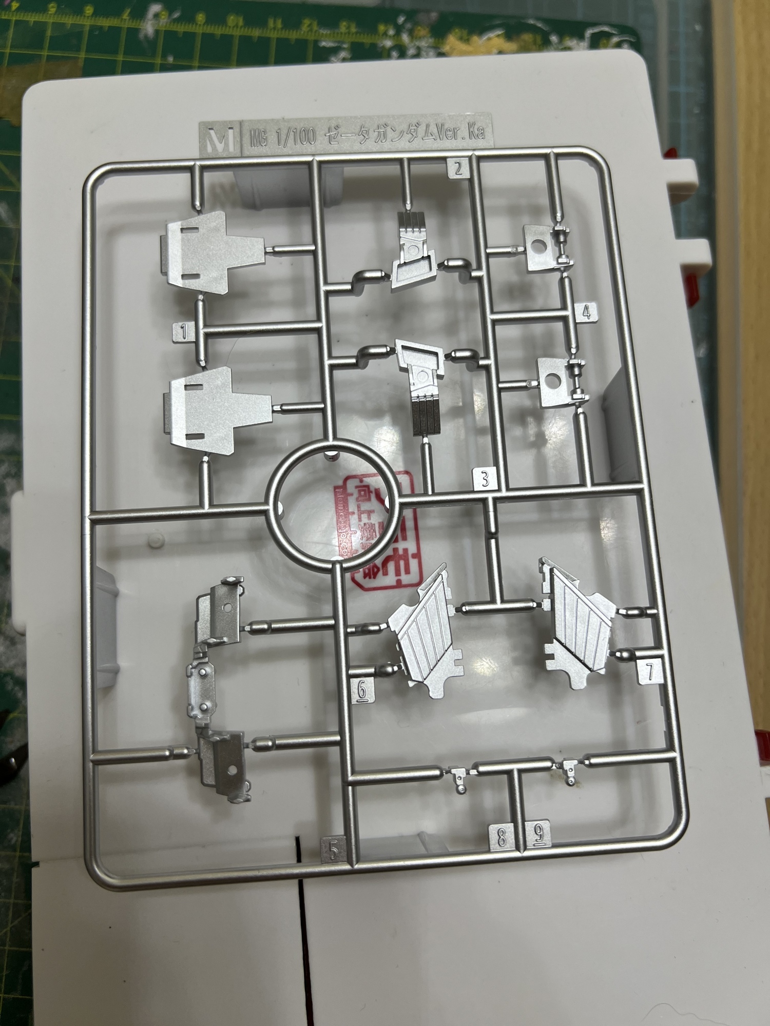 盒好大,係一貫MG Ver. Ka size,但唔滿,七袋板件,A-N板件加光劍特效,一共15板+水貼同補色貼紙,部份板件可以中間分開,原因不明,因為其他板件亦令佢放唔到入HG 比例果種size 嘅盒。M板件同MG 巴巴托司咁,都係噴銀,可能遲啲推出特別版如透明版之類會出電鍍銀。