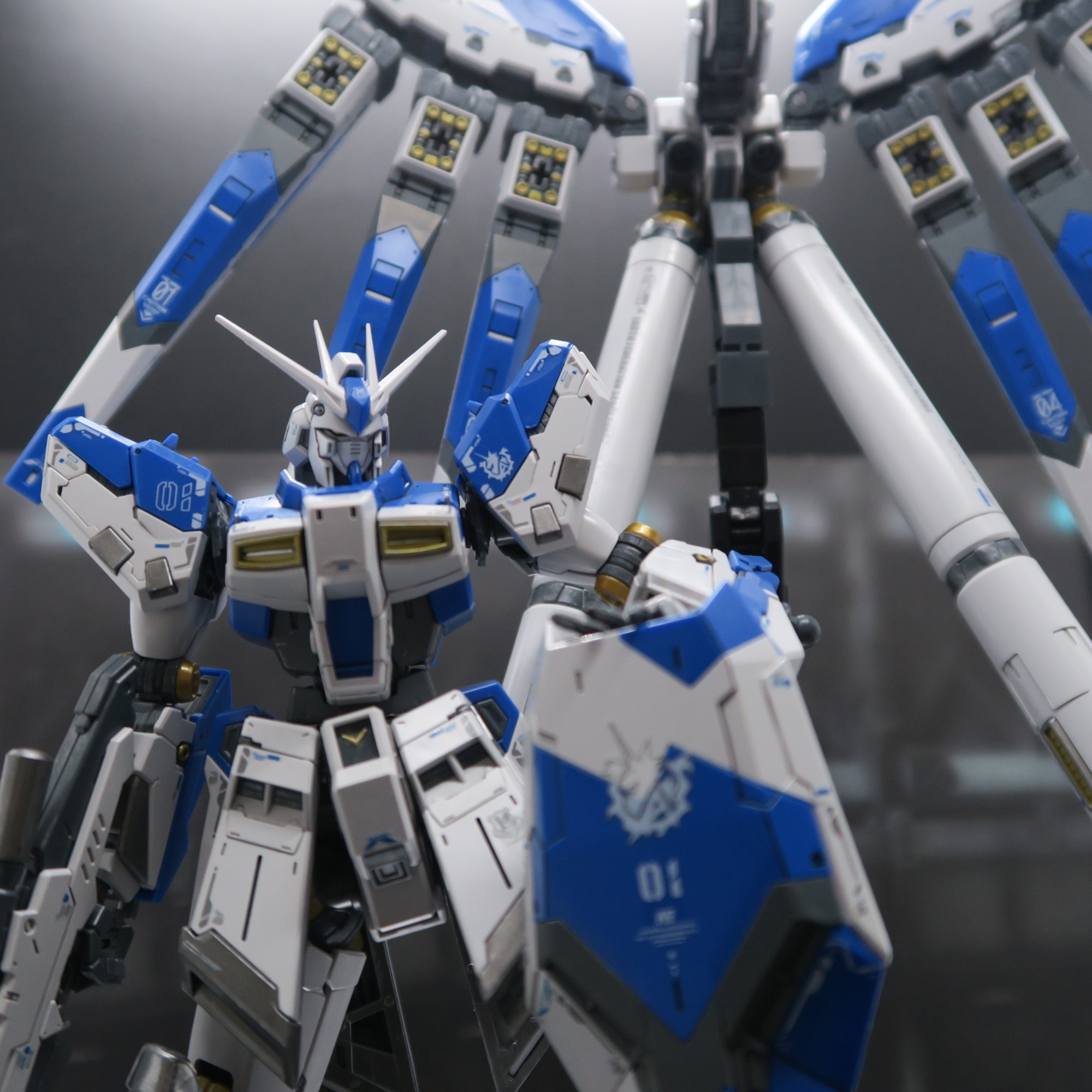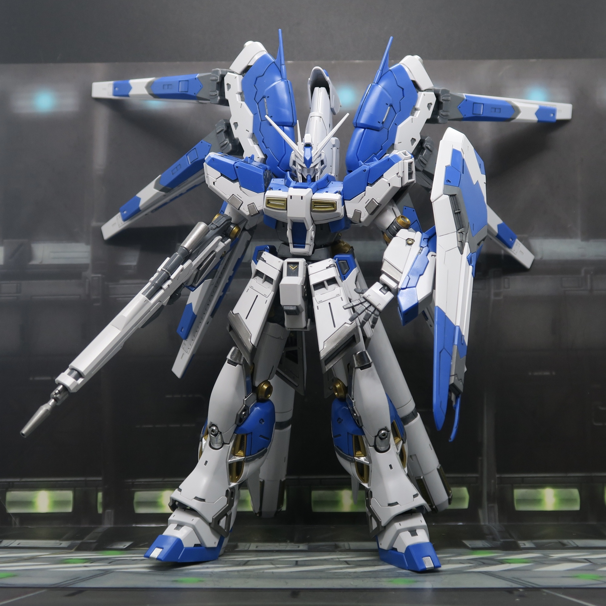其實佢係高達第一代「平衡宇宙」嘅代表,其實叫Hi Nu,機體番號係:RX-93-2,都係阿寶最後座駕,Nu 係動畫版嘅最後座駕,而Hi Nu 就係小說同後期漫畫嘅最後座駕。而配色方面就改為鮮明少少嘅藍配白,不過奇怪在⋯⋯不同情況下,會有紫配白,而且同G3一樣,每個版本嘅配色都唔一致,藍白配又有分別,紫白配亦有分別,究竟,官方嘅配色係方一個作先作準?既然都有就純以藍白灰配色,水貼亦用哩個色tone嚟統一一下,減少原設定中,紅色帶嚟嘅一點點不協調。