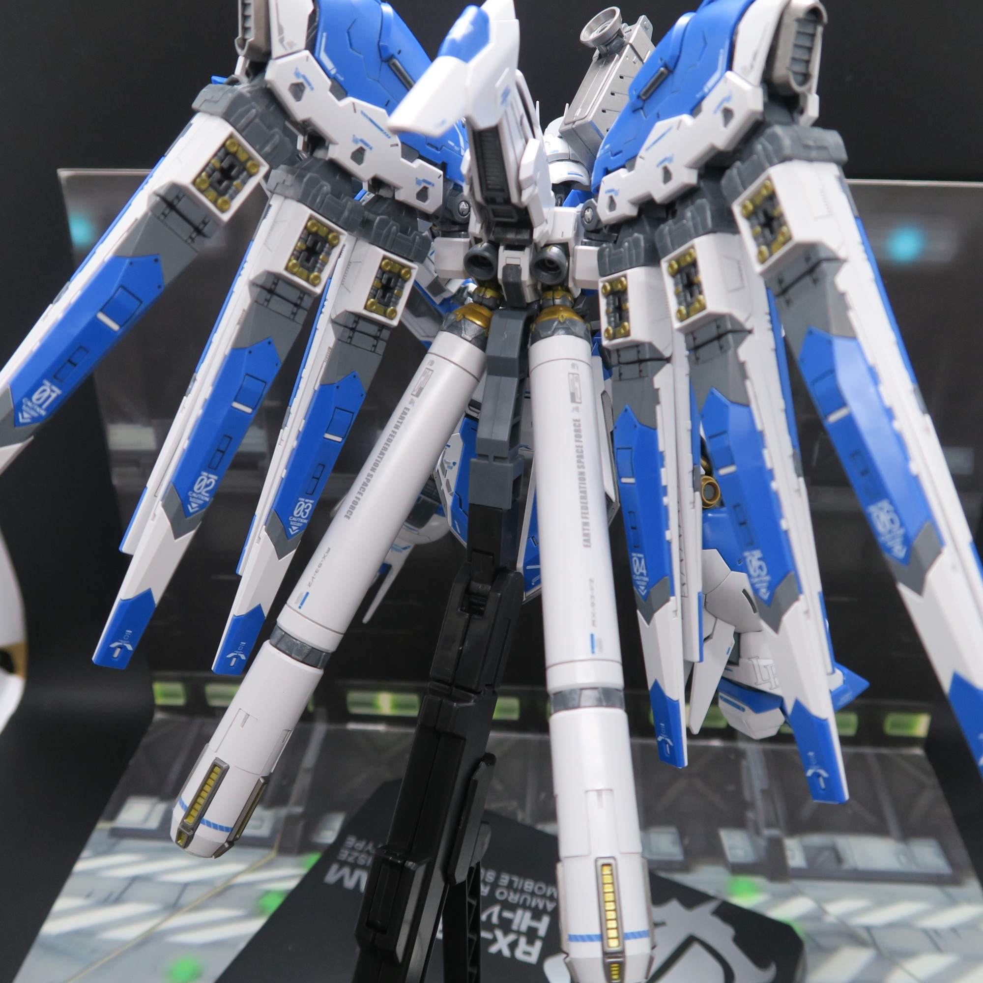 其實佢係高達第一代「平衡宇宙」嘅代表,其實叫Hi Nu,機體番號係:RX-93-2,都係阿寶最後座駕,Nu 係動畫版嘅最後座駕,而Hi Nu 就係小說同後期漫畫嘅最後座駕。而配色方面就改為鮮明少少嘅藍配白,不過奇怪在⋯⋯不同情況下,會有紫配白,而且同G3一樣,每個版本嘅配色都唔一致,藍白配又有分別,紫白配亦有分別,究竟,官方嘅配色係方一個作先作準?既然都有就純以藍白灰配色,水貼亦用哩個色tone嚟統一一下,減少原設定中,紅色帶嚟嘅一點點不協調。
