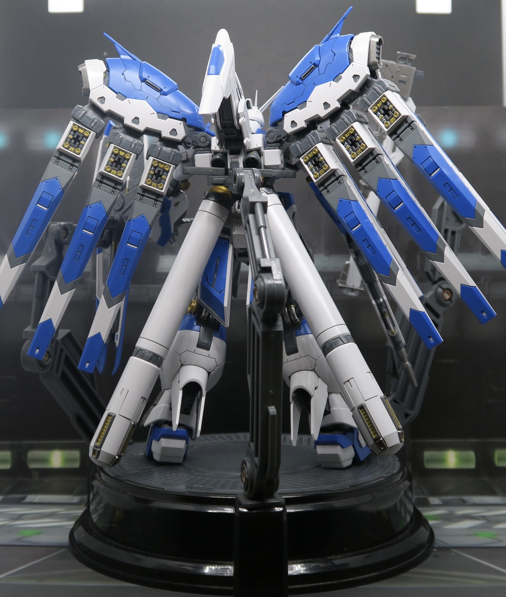 其實佢係高達第一代「平衡宇宙」嘅代表,其實叫Hi Nu,機體番號係:RX-93-2,都係阿寶最後座駕,Nu 係動畫版嘅最後座駕,而Hi Nu 就係小說同後期漫畫嘅最後座駕。而配色方面就改為鮮明少少嘅藍配白,不過奇怪在⋯⋯不同情況下,會有紫配白,而且同G3一樣,每個版本嘅配色都唔一致,藍白配又有分別,紫白配亦有分別,究竟,官方嘅配色係方一個作先作準?既然都有就純以藍白灰配色,水貼亦用哩個色tone嚟統一一下,減少原設定中,紅色帶嚟嘅一點點不協調。