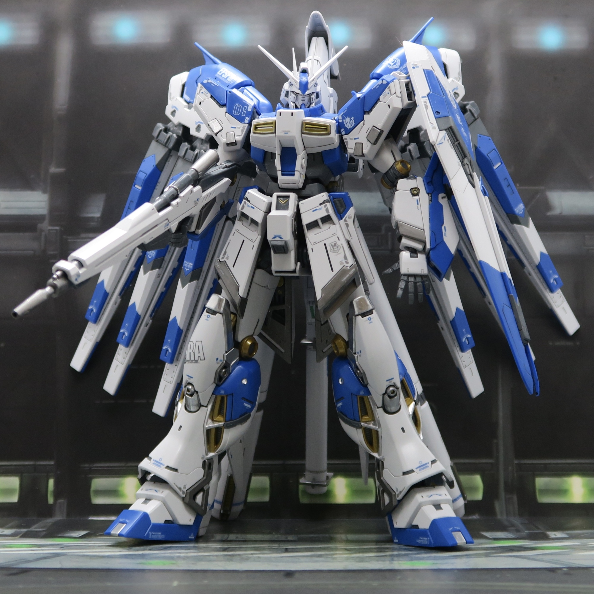 其實佢係高達第一代「平衡宇宙」嘅代表,其實叫Hi Nu,機體番號係:RX-93-2,都係阿寶最後座駕,Nu 係動畫版嘅最後座駕,而Hi Nu 就係小說同後期漫畫嘅最後座駕。而配色方面就改為鮮明少少嘅藍配白,不過奇怪在⋯⋯不同情況下,會有紫配白,而且同G3一樣,每個版本嘅配色都唔一致,藍白配又有分別,紫白配亦有分別,究竟,官方嘅配色係方一個作先作準?既然都有就純以藍白灰配色,水貼亦用哩個色tone嚟統一一下,減少原設定中,紅色帶嚟嘅一點點不協調。