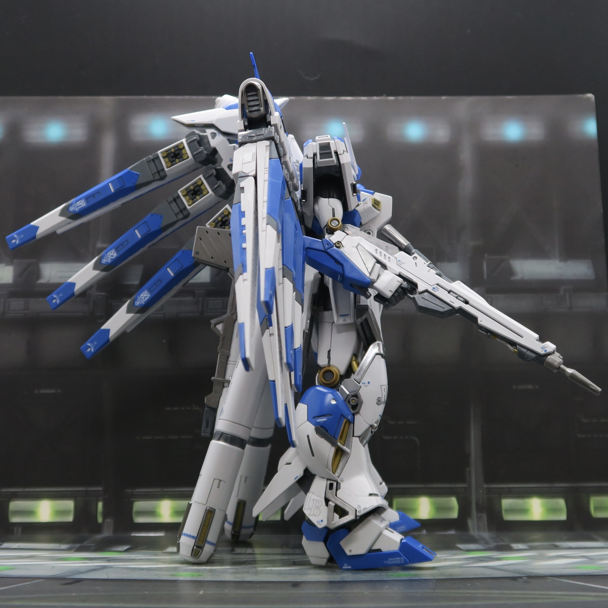 其實佢係高達第一代「平衡宇宙」嘅代表,其實叫Hi Nu,機體番號係:RX-93-2,都係阿寶最後座駕,Nu 係動畫版嘅最後座駕,而Hi Nu 就係小說同後期漫畫嘅最後座駕。而配色方面就改為鮮明少少嘅藍配白,不過奇怪在⋯⋯不同情況下,會有紫配白,而且同G3一樣,每個版本嘅配色都唔一致,藍白配又有分別,紫白配亦有分別,究竟,官方嘅配色係方一個作先作準?既然都有就純以藍白灰配色,水貼亦用哩個色tone嚟統一一下,減少原設定中,紅色帶嚟嘅一點點不協調。