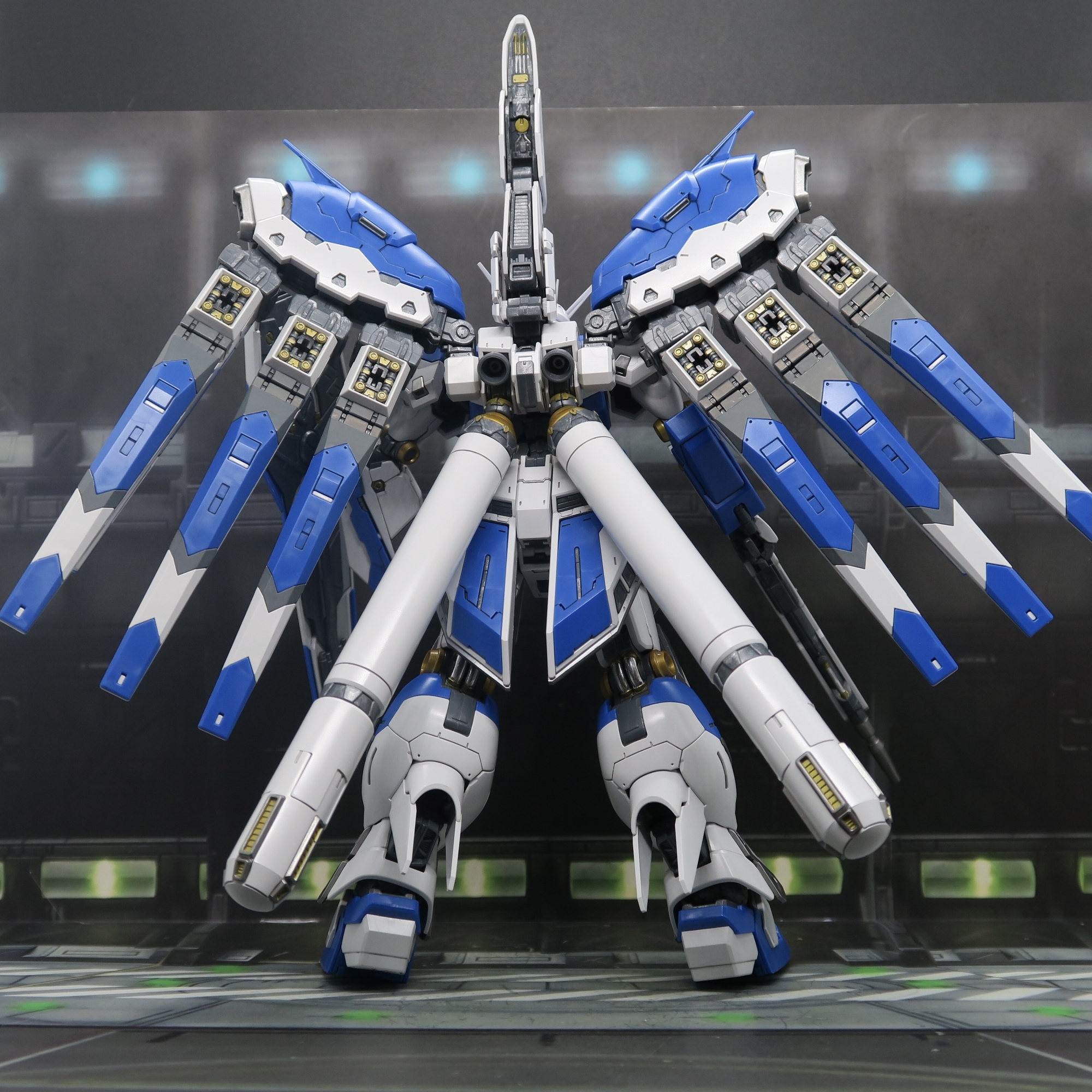 其實佢係高達第一代「平衡宇宙」嘅代表,其實叫Hi Nu,機體番號係:RX-93-2,都係阿寶最後座駕,Nu 係動畫版嘅最後座駕,而Hi Nu 就係小說同後期漫畫嘅最後座駕。而配色方面就改為鮮明少少嘅藍配白,不過奇怪在⋯⋯不同情況下,會有紫配白,而且同G3一樣,每個版本嘅配色都唔一致,藍白配又有分別,紫白配亦有分別,究竟,官方嘅配色係方一個作先作準?既然都有就純以藍白灰配色,水貼亦用哩個色tone嚟統一一下,減少原設定中,紅色帶嚟嘅一點點不協調。