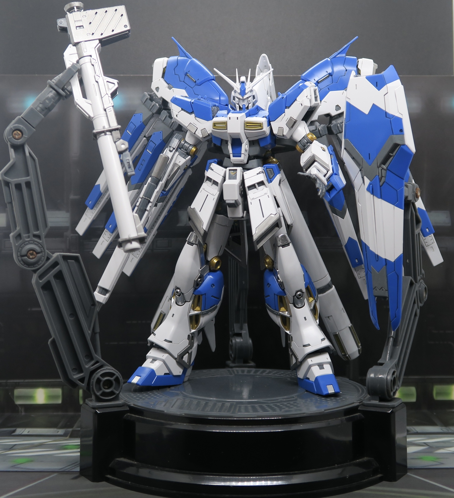 其實佢係高達第一代「平衡宇宙」嘅代表,其實叫Hi Nu,機體番號係:RX-93-2,都係阿寶最後座駕,Nu 係動畫版嘅最後座駕,而Hi Nu 就係小說同後期漫畫嘅最後座駕。而配色方面就改為鮮明少少嘅藍配白,不過奇怪在⋯⋯不同情況下,會有紫配白,而且同G3一樣,每個版本嘅配色都唔一致,藍白配又有分別,紫白配亦有分別,究竟,官方嘅配色係方一個作先作準?既然都有就純以藍白灰配色,水貼亦用哩個色tone嚟統一一下,減少原設定中,紅色帶嚟嘅一點點不協調。