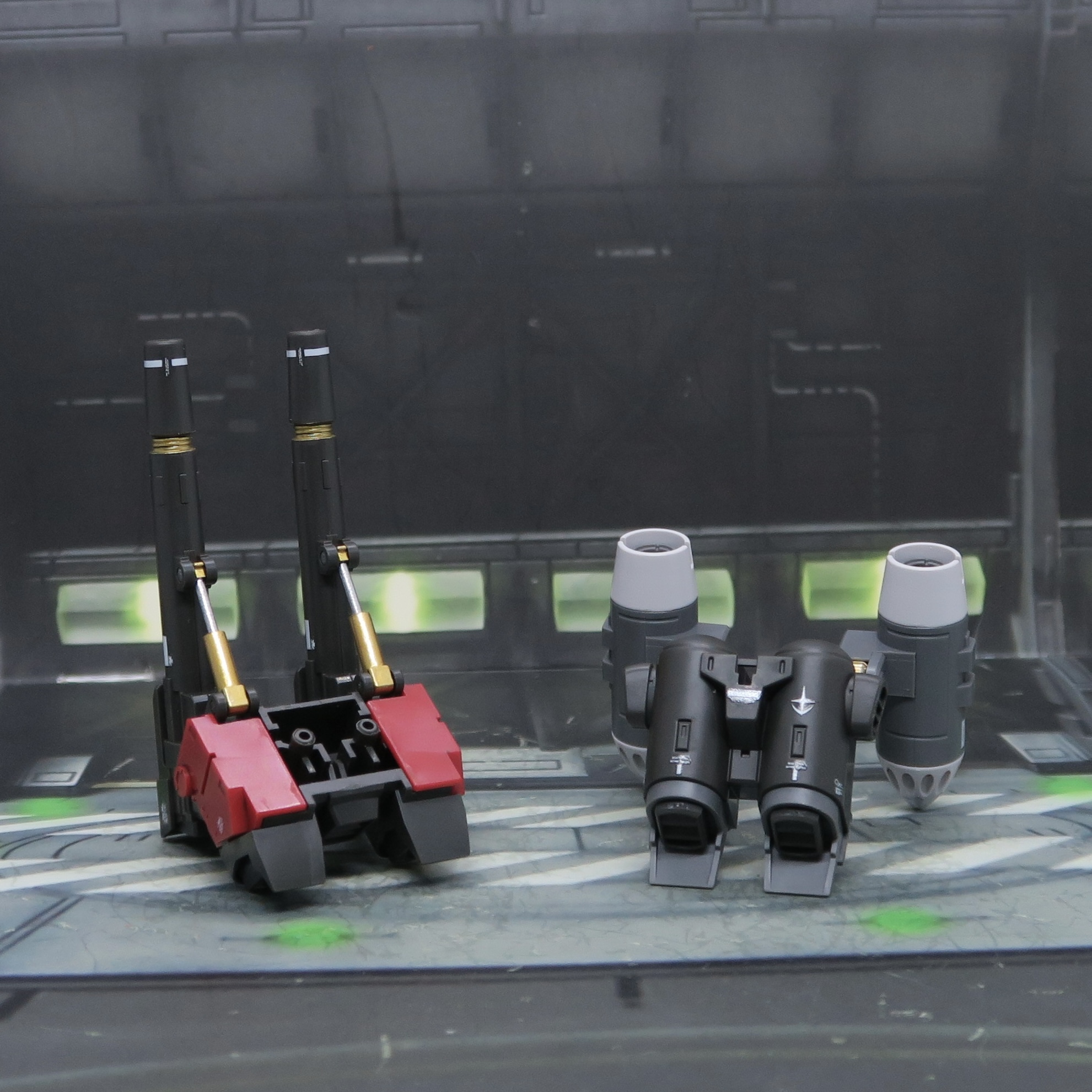 同HGUC 新生版比較,當然係GTO化之別,細節位RG級提升,當然售價都係RG級提升。舊版HGUC配置晒兩款肩炮,唔知咩原因,新生版只配備「240mm 肩炮」,而「噴射式飛彈發射器」就被消失了,而且唔能夠直接兼用舊版,想殺肉都做唔到,而今次GTO版不單有齊兩款肩炮,GTO升級,而且連背包都一齊升級,唔止係換炮,係直接成組背包換,一整套武器系統嘅更換。絕對誠意滿滿。再睇下兩款肩炮同背包,同UC 版有一種交叉聯動,有連系,再又有分別。
